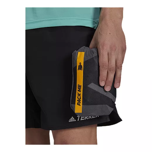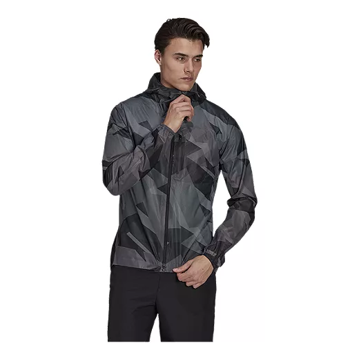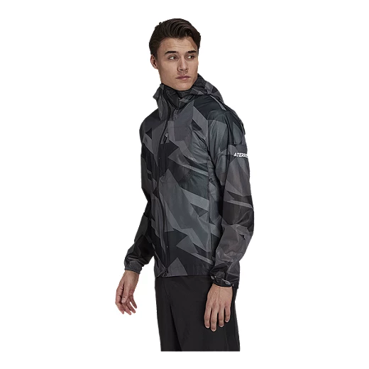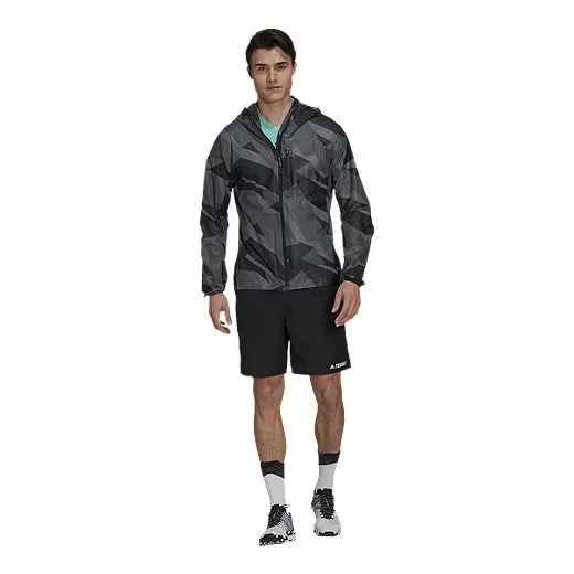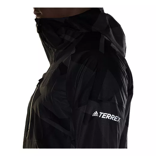 Online Exclusive. Weather happens. Head for the trails ready for anything. This adidas Terrex trail running rain jacket keeps you dry and comfortable through wet conditions. It’s waterproof, breathable and lightweight enough to stow into the chest pocket for easy storage. There’s plenty of stretch for unrestricted movement and the versatility to handle adventure near and far.