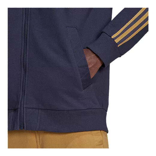 Away games don’t start when the whistle blows. They kick off the second you get on the bus. Taking cues from football fan culture, this adidas Tiro jacket keeps your look laid-back and your trips comfortable thanks to its soft French terry build. With your club jersey hiding underneath, the full zip means you can go from super casual to superfan with the flick of a wrist.