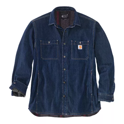 A little cool weather is no match for this men’s shirt jacket. Made of durable denim with an iconic Carhartt blanket lining, it keeps you warm on or off the job. The relaxed fit makes it easy to wear over other layers.