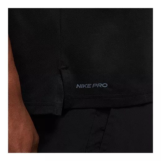 The Nike Pro Dri-FIT Tank helps keep you cool, dry and focused on your performance. Lightweight fabric is made from at least 50% recycled polyester and keeps the air flowing so you can breathe easy during high-heat workouts or competition.