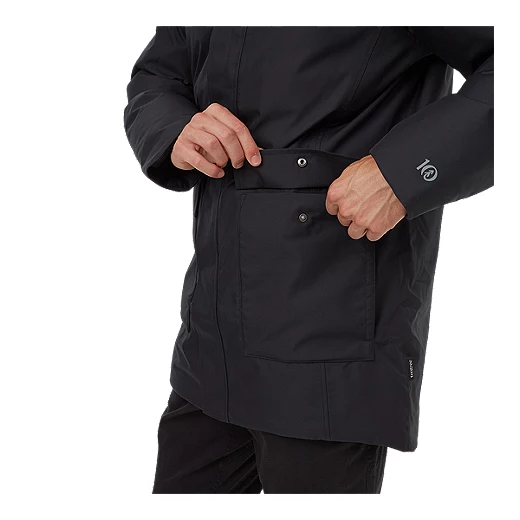 | SPECIFICATIONS | Advanced Features: Water Resistant, Advanced Technology: No Advanced Technology, Care Instruction(s): Tumble Drying Allowed, Machine Wash Cold, Do Not Bleach, Do Not Iron, Coating: PFC-Free DWR, Colour(s): Black, Cuff Style: Extended, Denim Wash: Not Applicable, Fill/Insulation Type: Polyester, Front Closure: Zipper and Snaps, Jacket/Coat/Vest Type: Winter Jacket, Lining: 100% Recycled Polyester, Minimum Temperature Protection Rating (°C): -25 °C, Minimum Temperature Protection Rating (°F): -13 °F, Number of Pockets: 9, Pocket Type(s): Hidden Pocket, Zipper, Snap, Patch Pocket, Primary fabric: 100% Recycled Polyester, Sustainability: Recycled polyester, Product contains recycled content, Contains BLUESIGN® – Approved fabric, PFC – Free Water Repellency, B Corp Certified Brand, Contains Repreve Recycled Fibre |